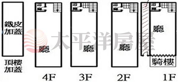 一至四層樓.側邊有增建可作為樓上分層使用進出通道