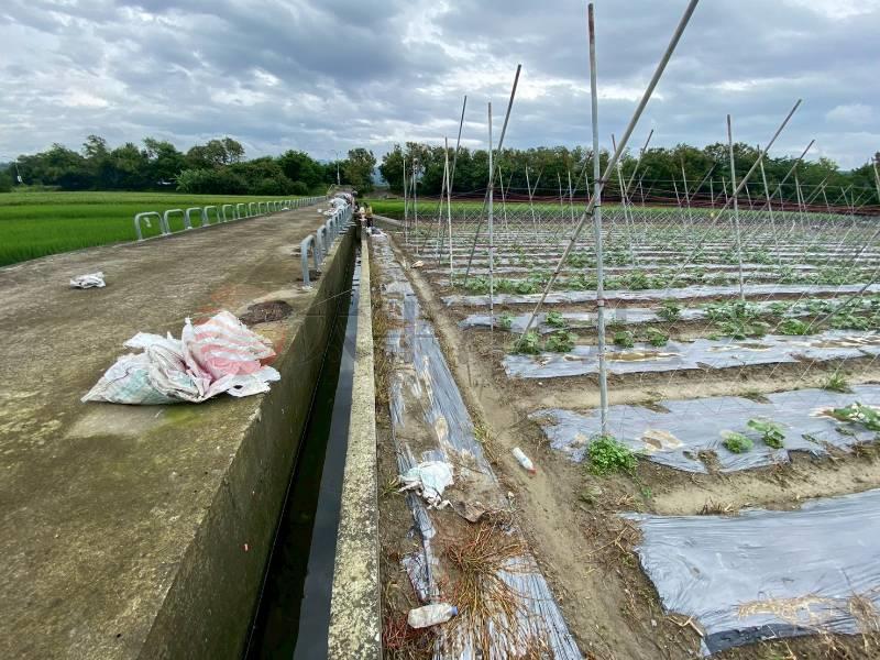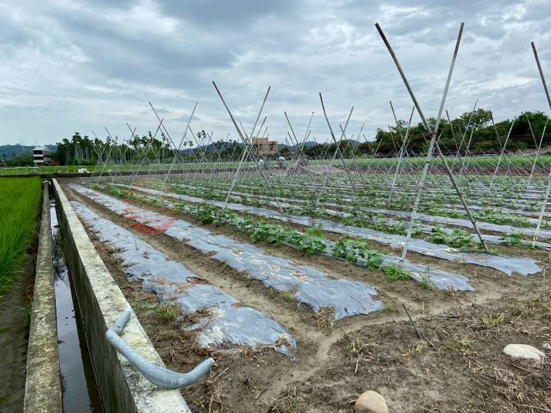 近國6、有水源、農地旁有溝渠,臨路方便耕種,地上物種植大黃瓜。