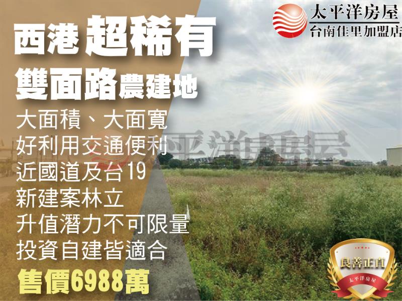西港稀有雙面路農建地