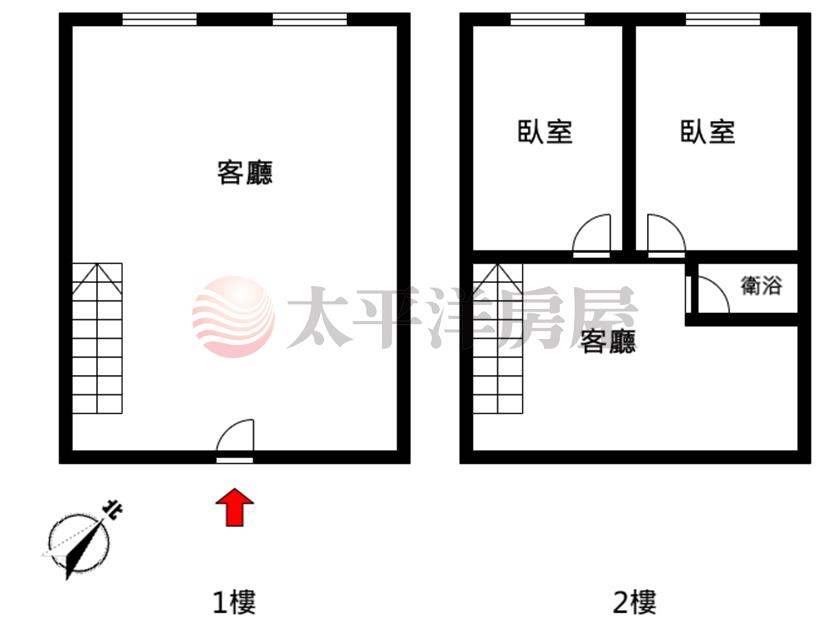 方正格局透天1+2樓.2房2廳1衛