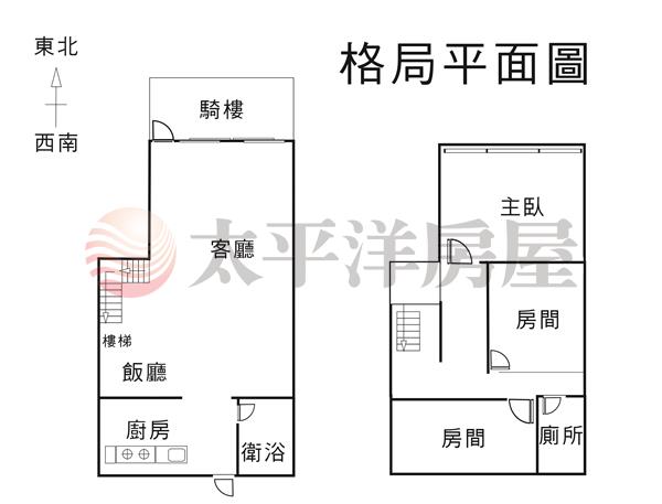 2、公寓一樓+權狀夾層(有增建),三房二廳雙衛浴,使用空間大。