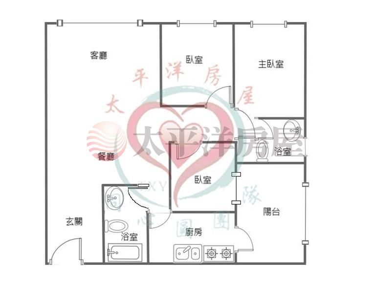 格局方正,採光通風,双衛浴,後大陽台,低公設,市中心優質社區