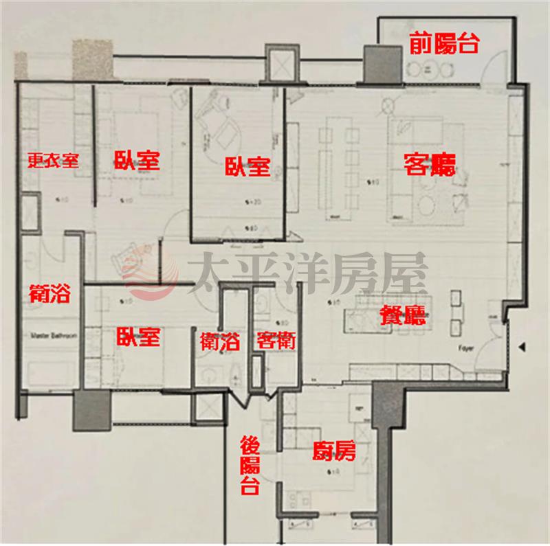 大三房雙主臥設計,室內使用空間大 衛浴皆開窗通風不潮濕