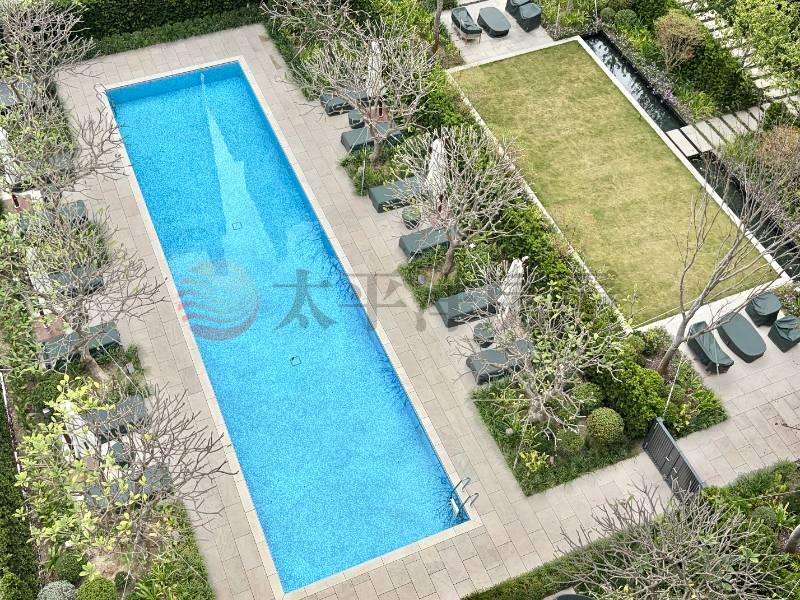 朝南永久棟距三房,泳池綠意盡收眼底。