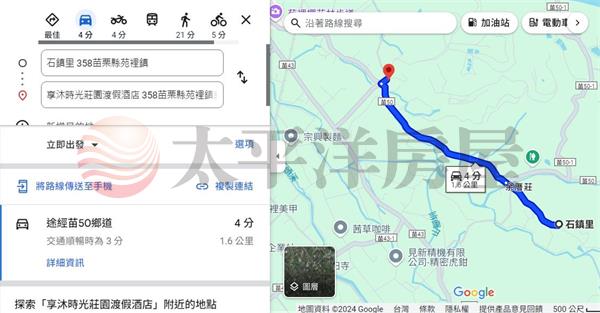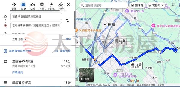 開車約4分進苗50鄉道、約16分到火車站