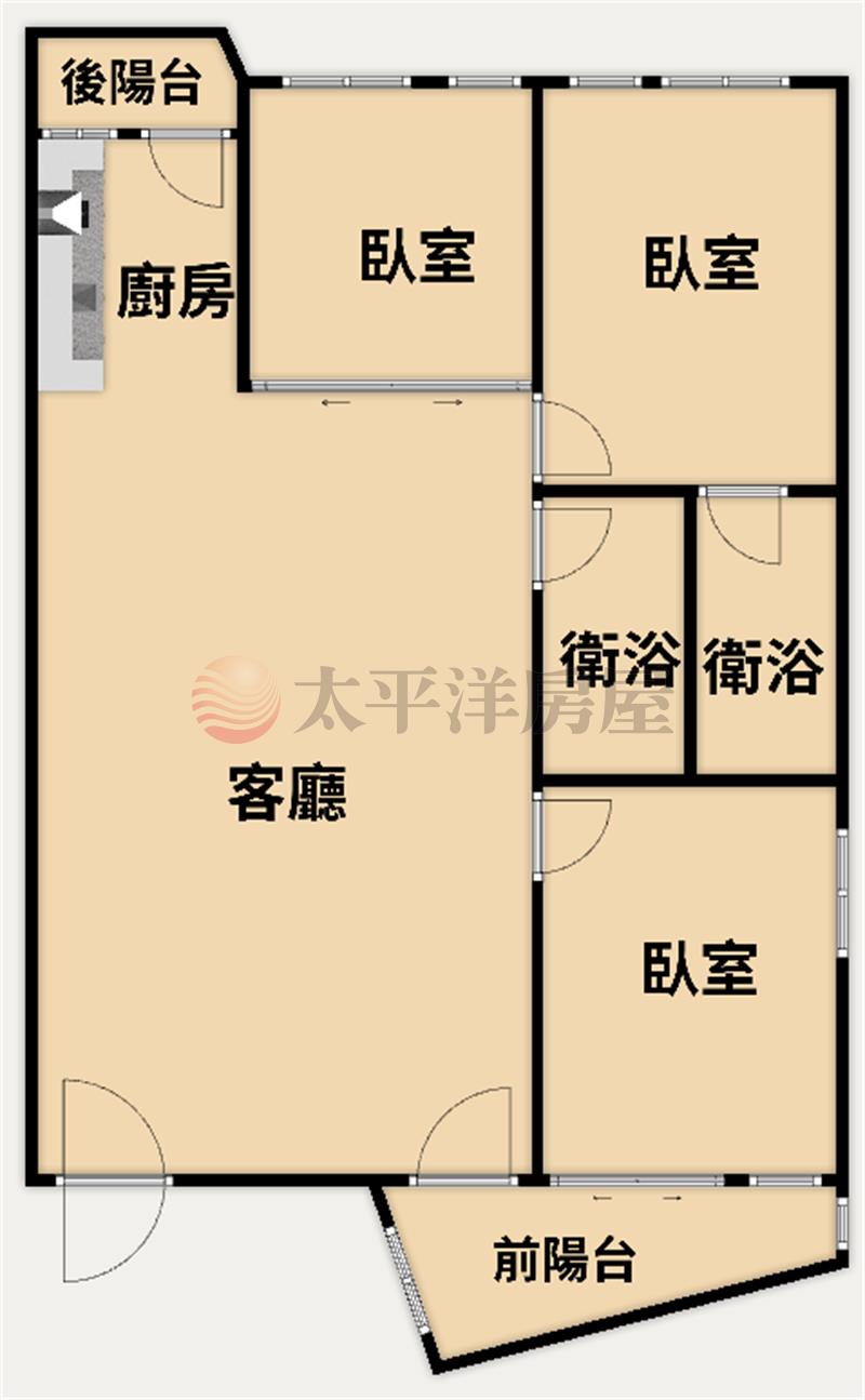 房屋一梯兩戶,房間間間開窗,格局方正