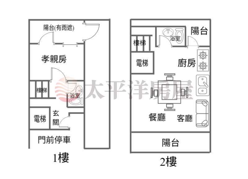 門前可停兩台車,車庫可停兩台