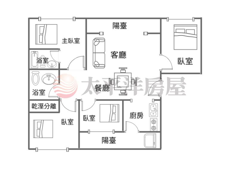 格局方正,採光佳,社區四房稀有格局