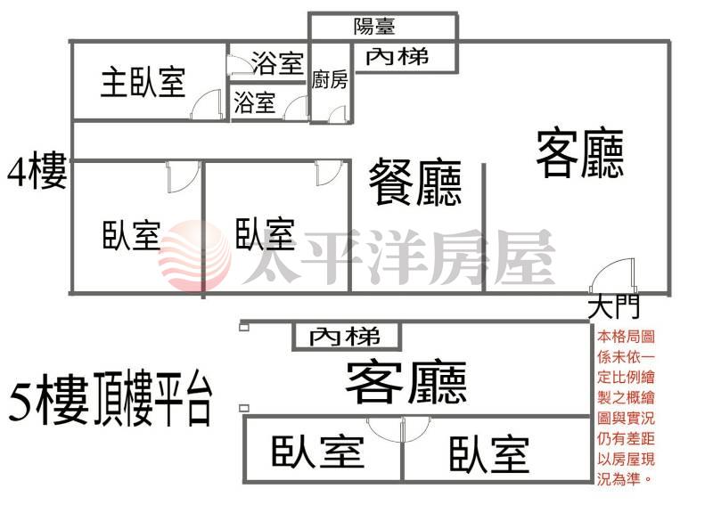 4樓3房2廳2衛內梯5樓2房大露台