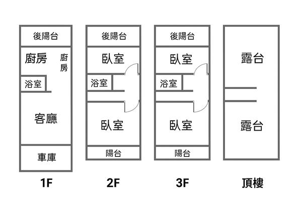 ※傳統格局前院停車,每間房間皆有陽台