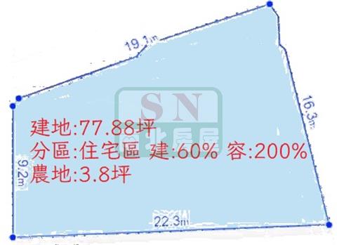 建地面積:77.88坪、農地面積:3.8坪