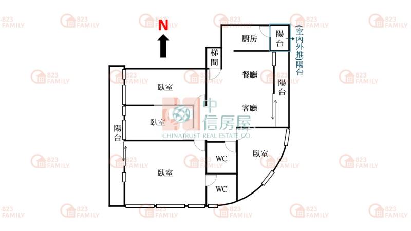 角間格局.三大陽台.三面採光.室內接近40坪