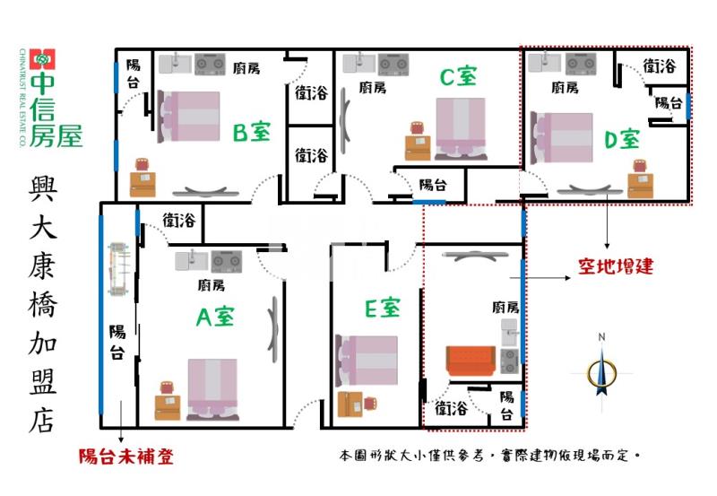 5大套房2大陽台(加建:前、後陽台)