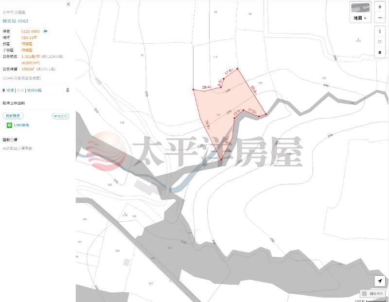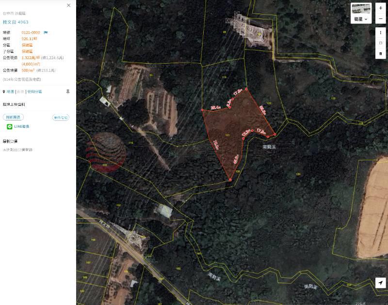1、沙鹿區超大地坪 2、保護區使用用地 3、開價公告現值 4、現況為空地 只有樹 5、3分鐘到台灣大道