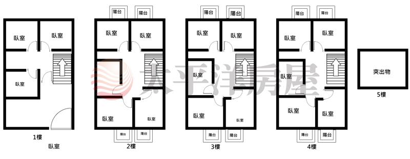 1F:3間套房。 2~4F:5間套房。 電一度$6。垃圾回收$7000/月。 收租套房:無陽台房型$7000/月。其餘房型$8000/月。 中間房間無開窗 ,但衛浴都有開窗。 5F大露臺可曬棉被。