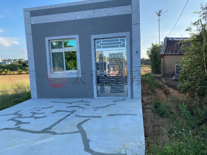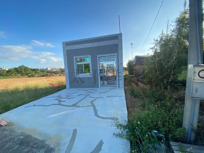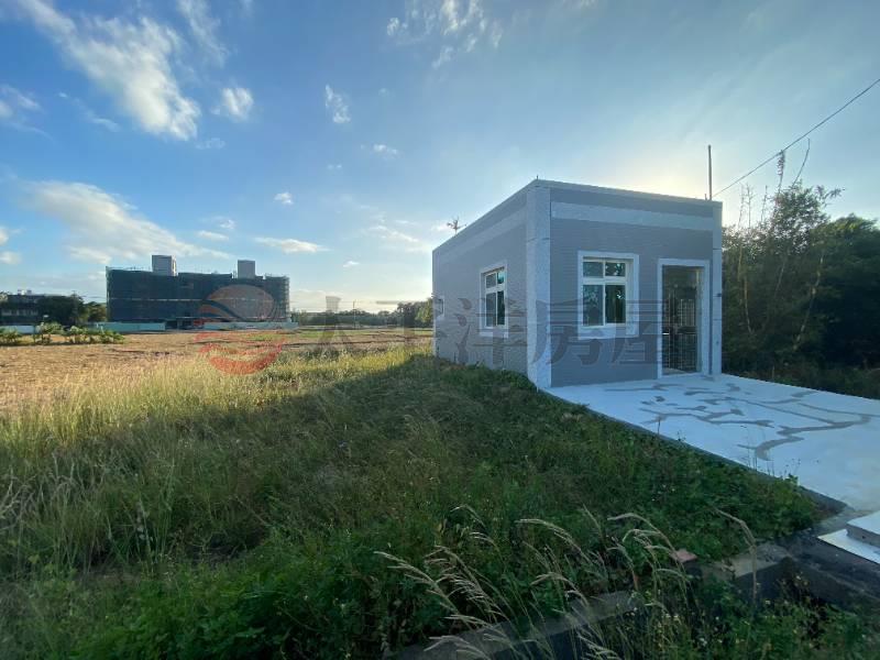 全新資材室,內有衛浴設備,自來水、電 地形方正,土地的尾端有一條排水溝為界 到新屋公車站、傳統市場約需10分鐘