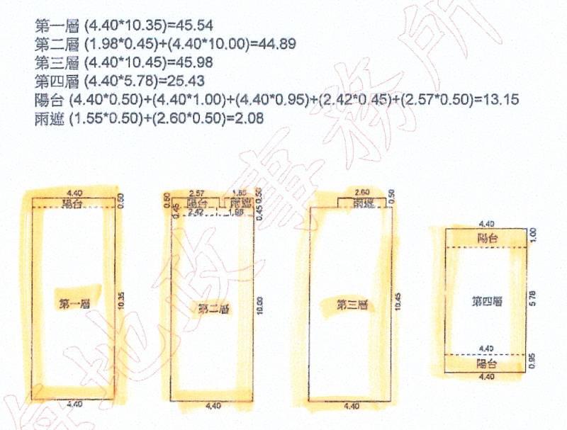1 樓約:13.78坪 、 高度約:3.4 2 樓約:13.58坪、 高度約:3.3 3 樓約:13.91坪、高度約:3.3 4 樓約:7.69坪 、高度約:3 寧靜美墅 清幽悠閒