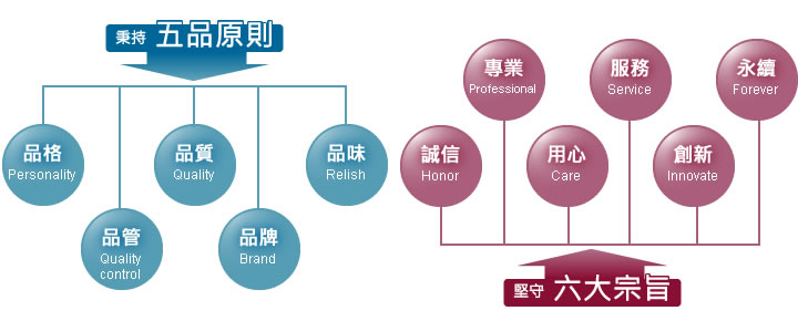 秉持 六大宗旨(誠信、專業、用心、服務、創新、永續)、堅守 五品原則(高尚品格、嚴格品管、優良品質、完美品牌、遵循品味),從台灣首創線上房管平台,到輔導第一品牌全面使用,乃至於全國最大的加盟直營商(凱X)客戶的肯定,堅持取之於社會、用之於社會,凝聚團隊精神、發揮企業影響力,立足台灣並放眼世界,持續努力精進!