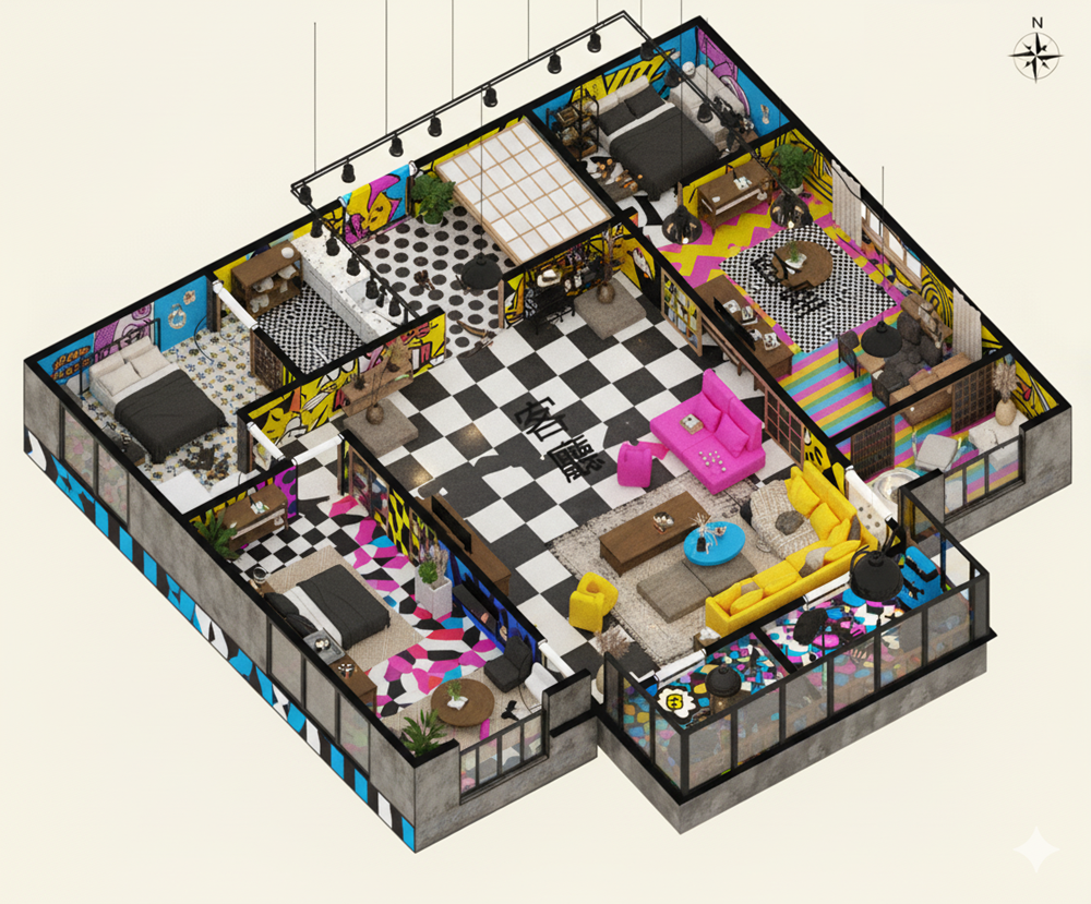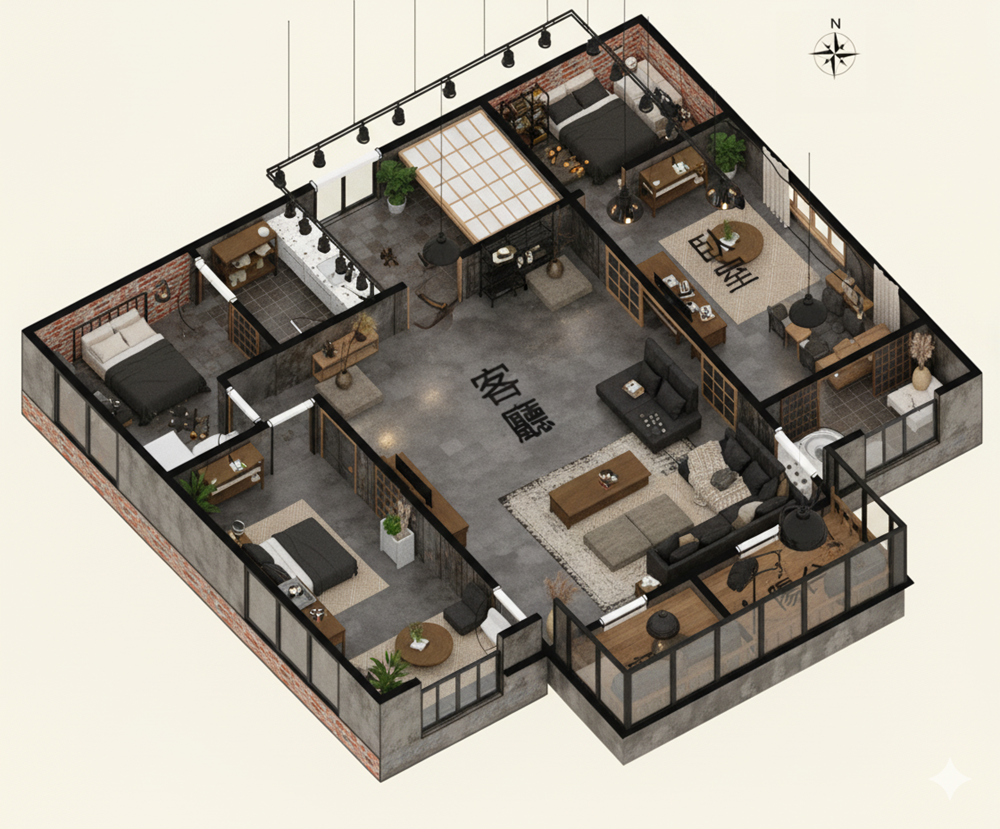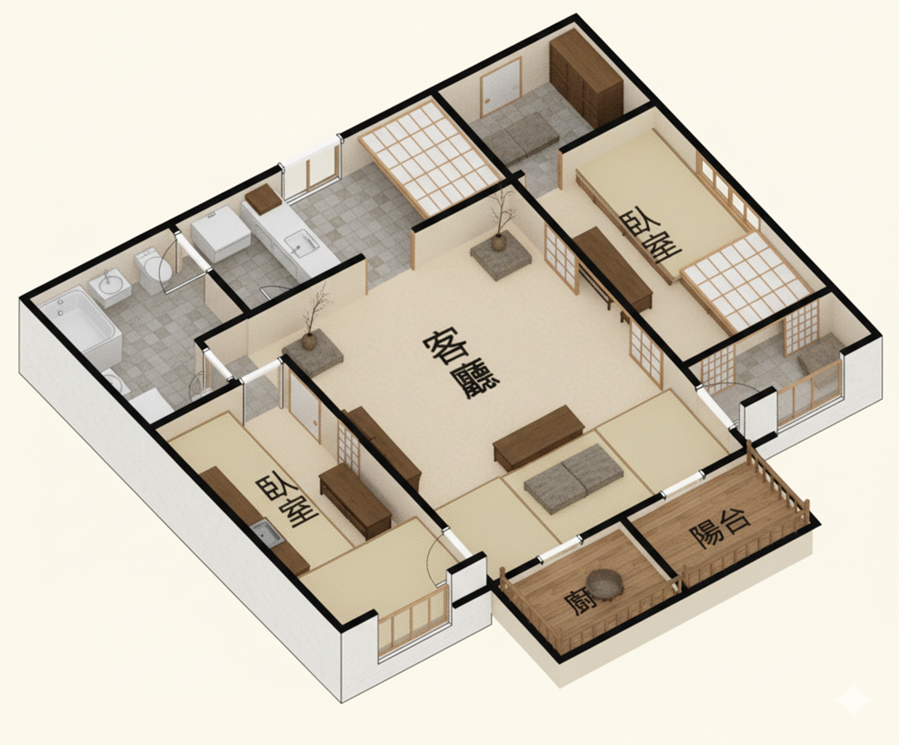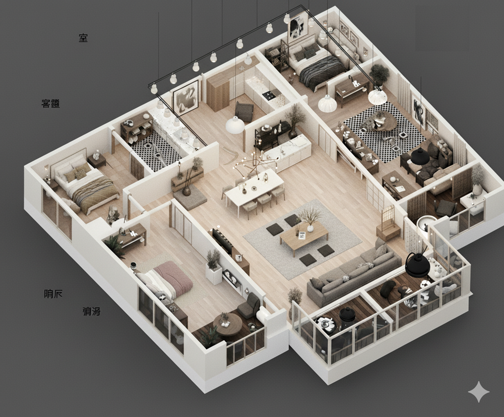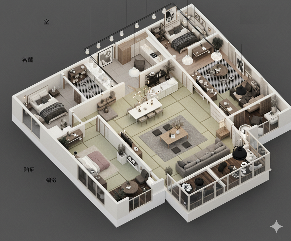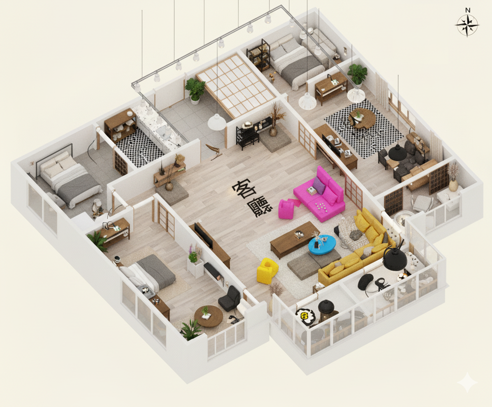 ✨愛屋AI生成微立體、有隔間、彩色、各種不同風格格局圖範例賞析03