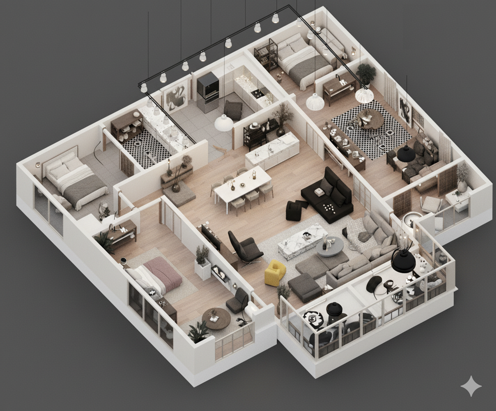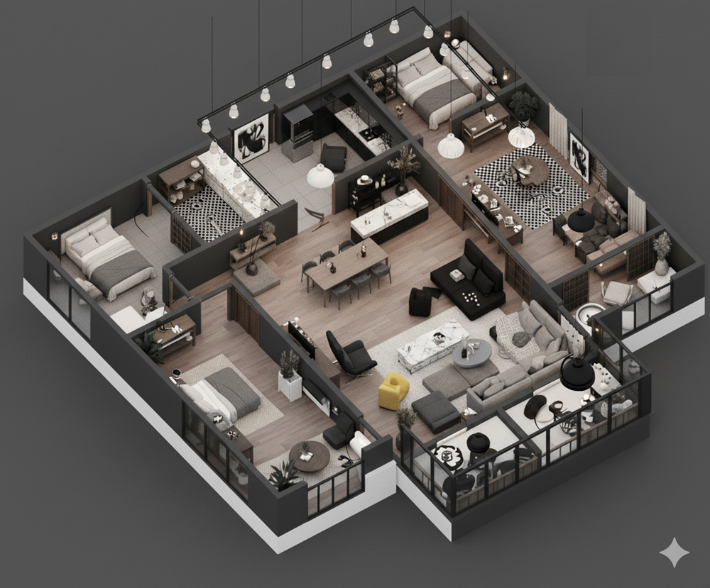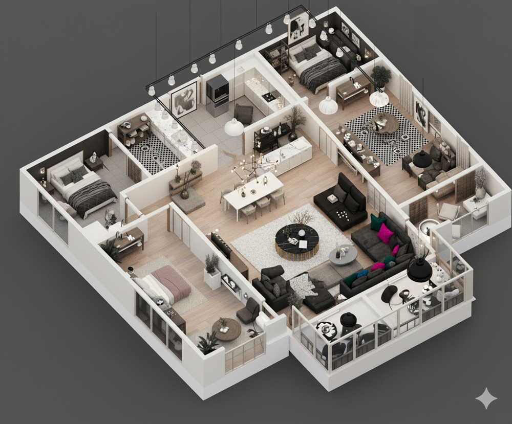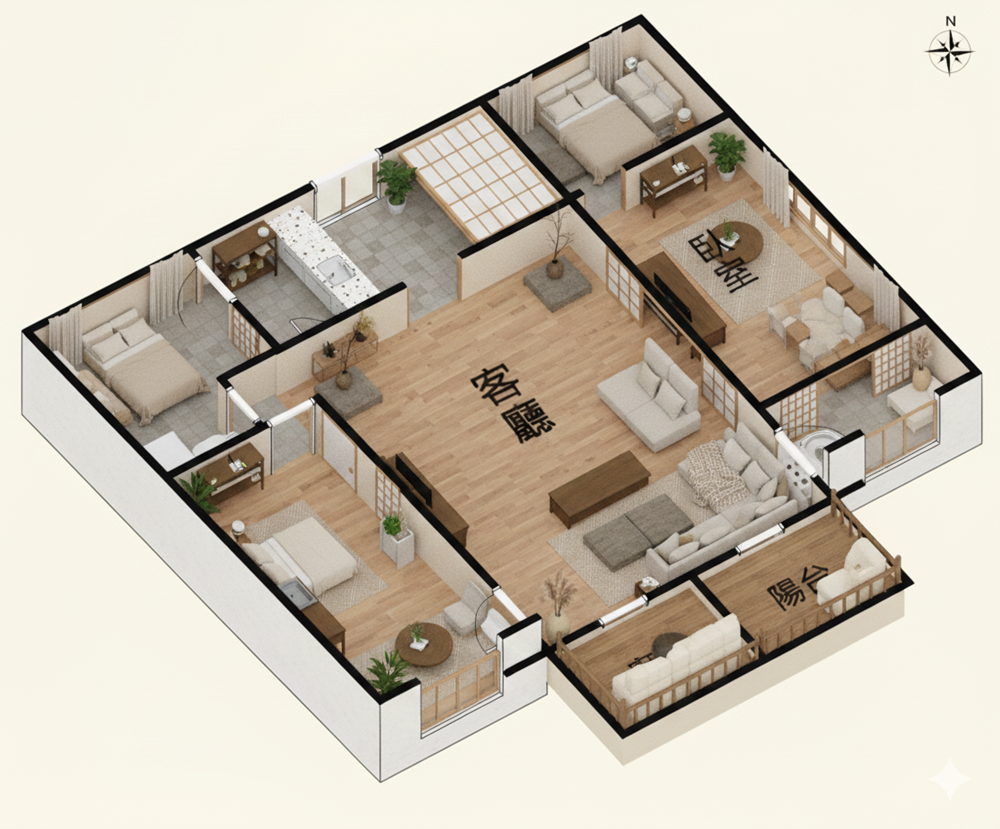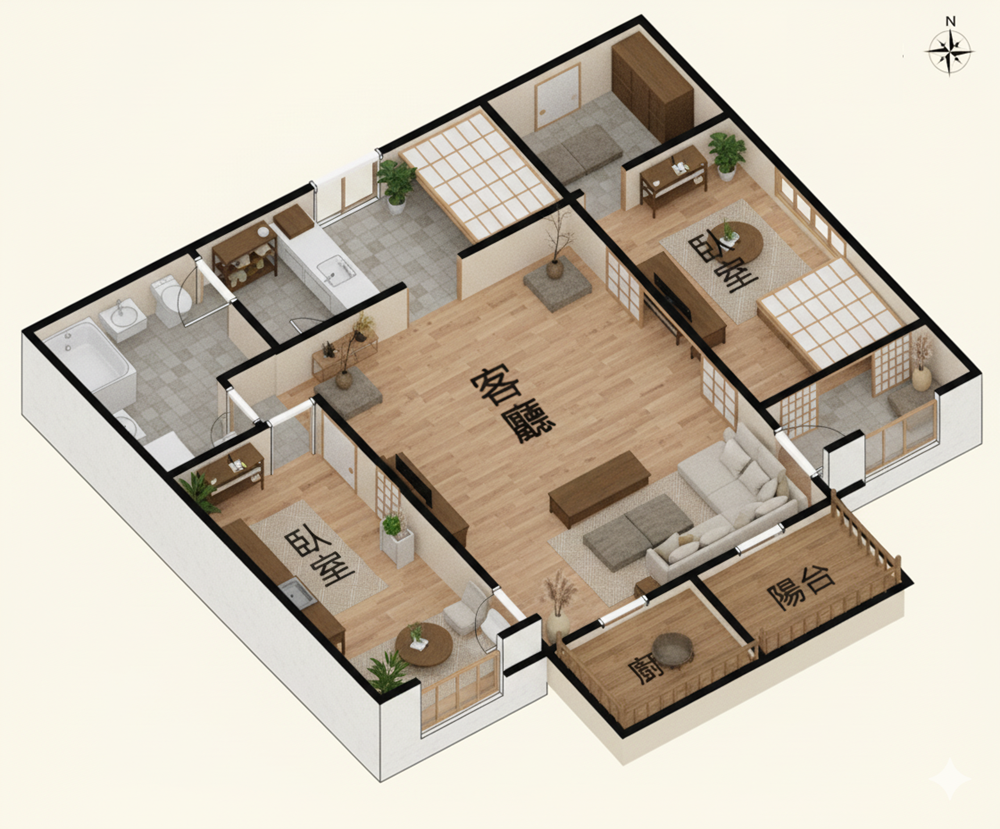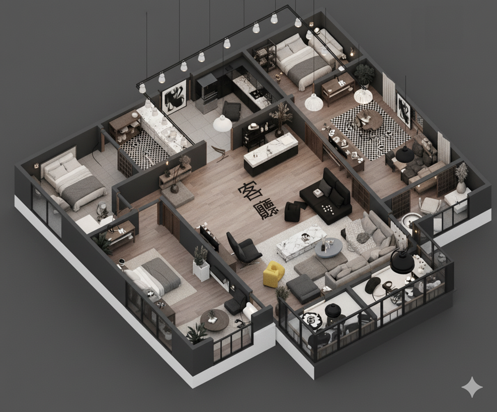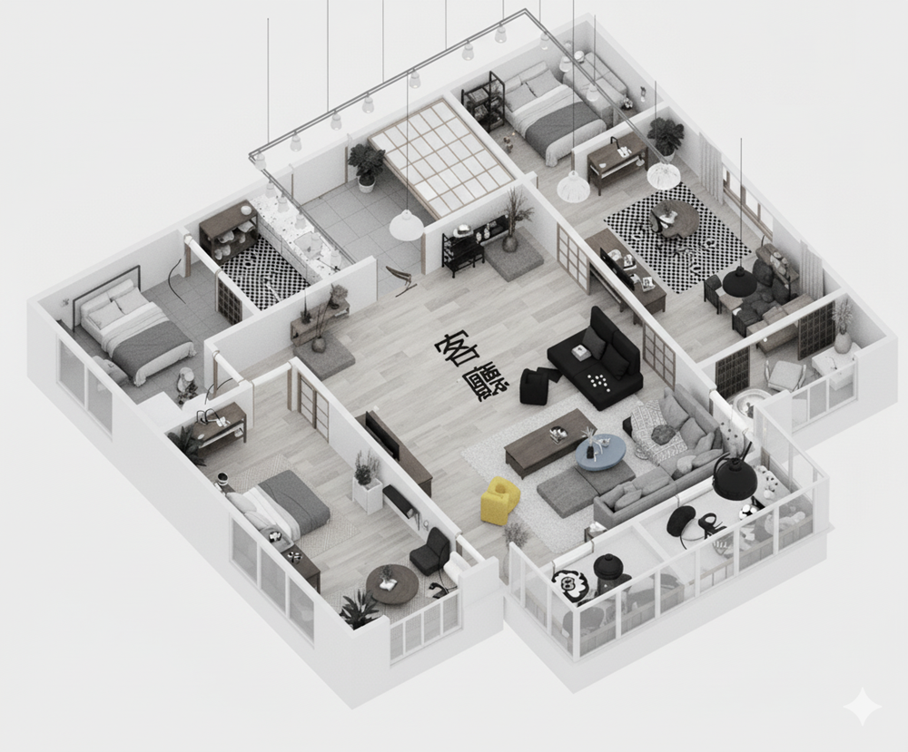 ✨愛屋AI生成微立體、有隔間、彩色、各種不同風格格局圖範例賞析03