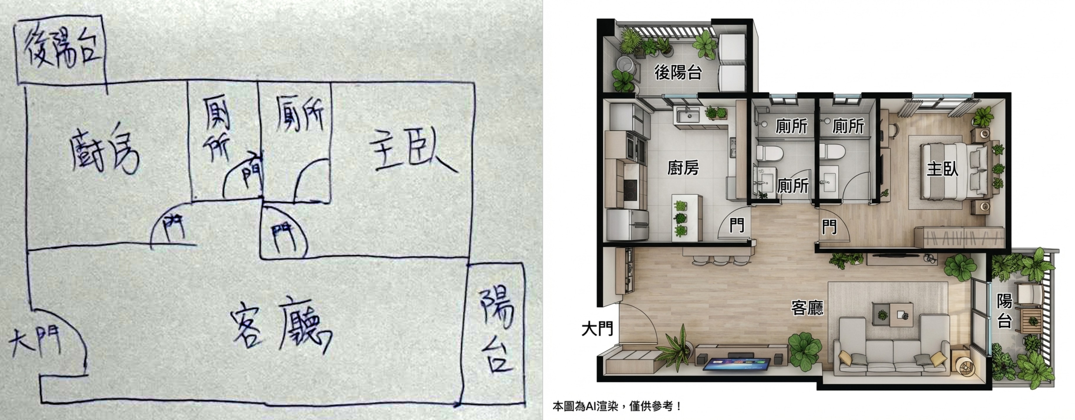 手繪格局圖直接轉AI✨渲染