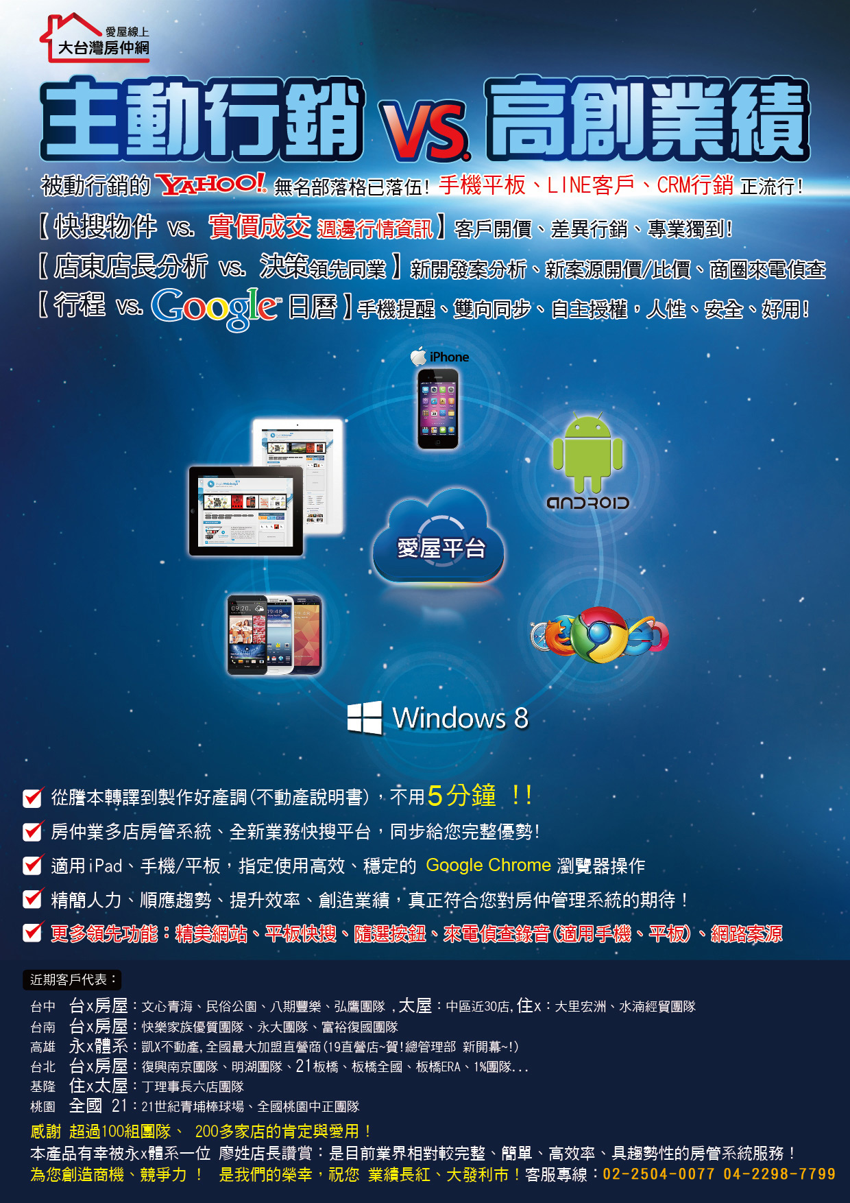 房仲業多店房管系統、全新業務快搜平台,同步給您完整優勢!
