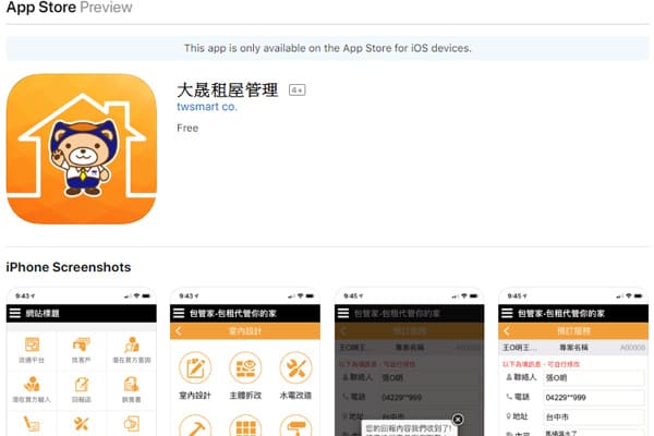 包租代管業者,大晟租屋管理iOS App上架了!