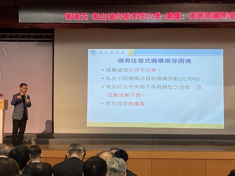 薛瑞元首先講述長期照顧新樣貌。他說據推估2018至2065年台灣人口會減少624萬,從目前的2300多萬回到1975年的1800萬人左右,但65歲以上老年人口卻超過600萬人,從現行的300萬人再增加372萬,也就是工作的青壯年人口僅剩1200萬,長遠看來是個危機。