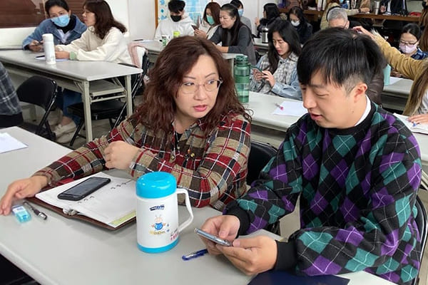 教室裡包括 鄭俊杰鄭董、Sally Gogo高總、陳智育陳副總、各單位協理、業務單位、會計秘書,全員到齊、全程參與,足見對於系統導入之決心與重視。