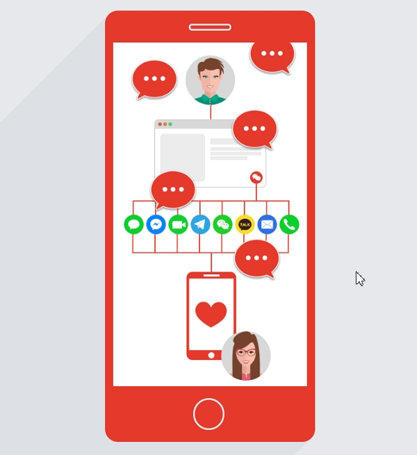 KeyReply免費製作網站線上客服對話按鈕,主要是針對行動裝置所設計,讓使用者點開氣泡框就能直接連接到LINE、Facebook Messenger、Skype、Telegram等常見的社群軟體視窗或撥打電話與客服連絡。操作非常簡單,免註冊帳號,只要在頁面中的社群方框輸入你的ID,並調整按鈕的上下顯示順序,即可將產生的程式碼貼入到部落格和網站中。