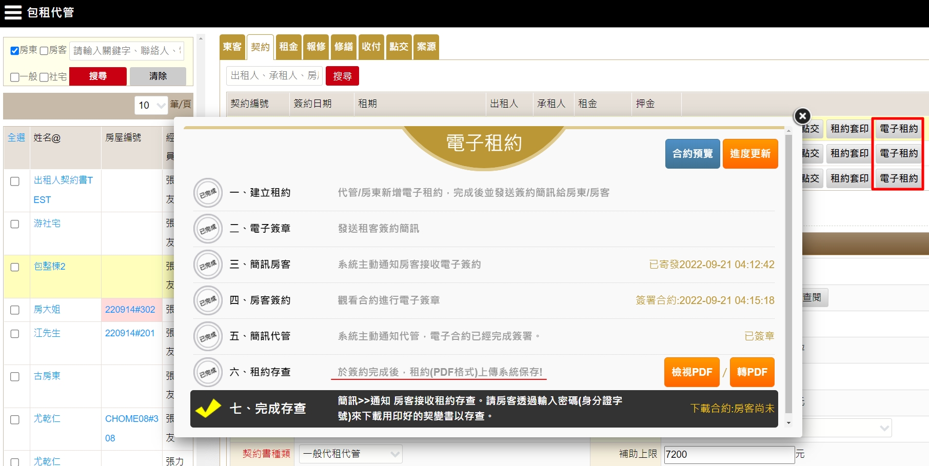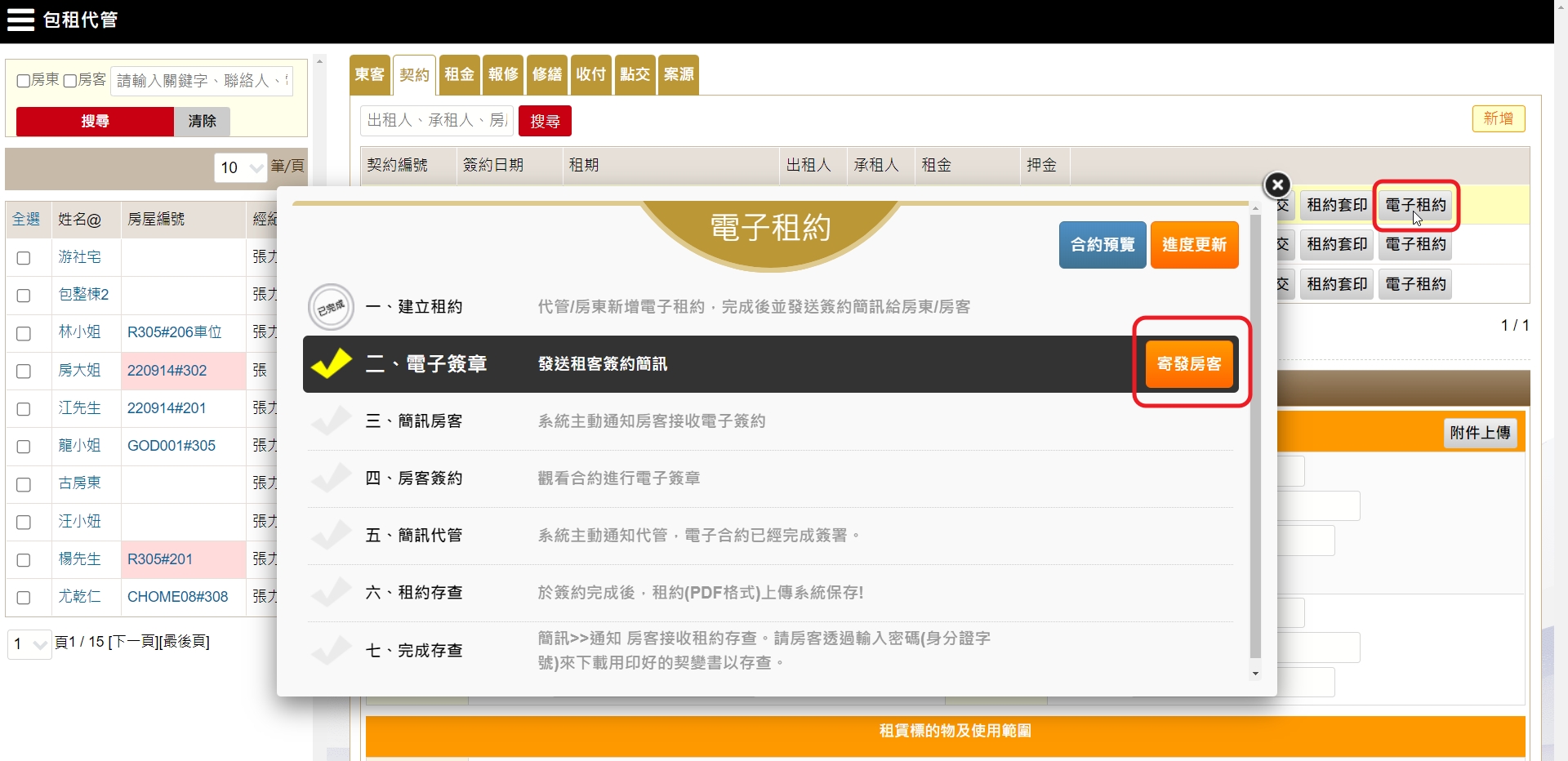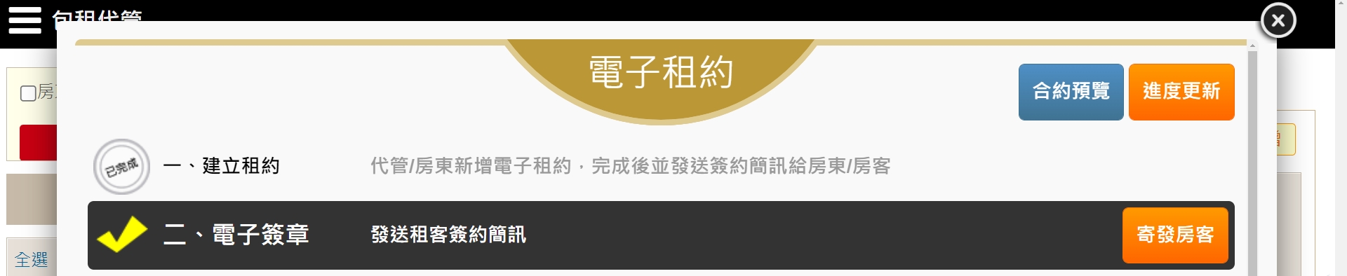 點擊列表上【電子租約】,開始進行電子租約流程。