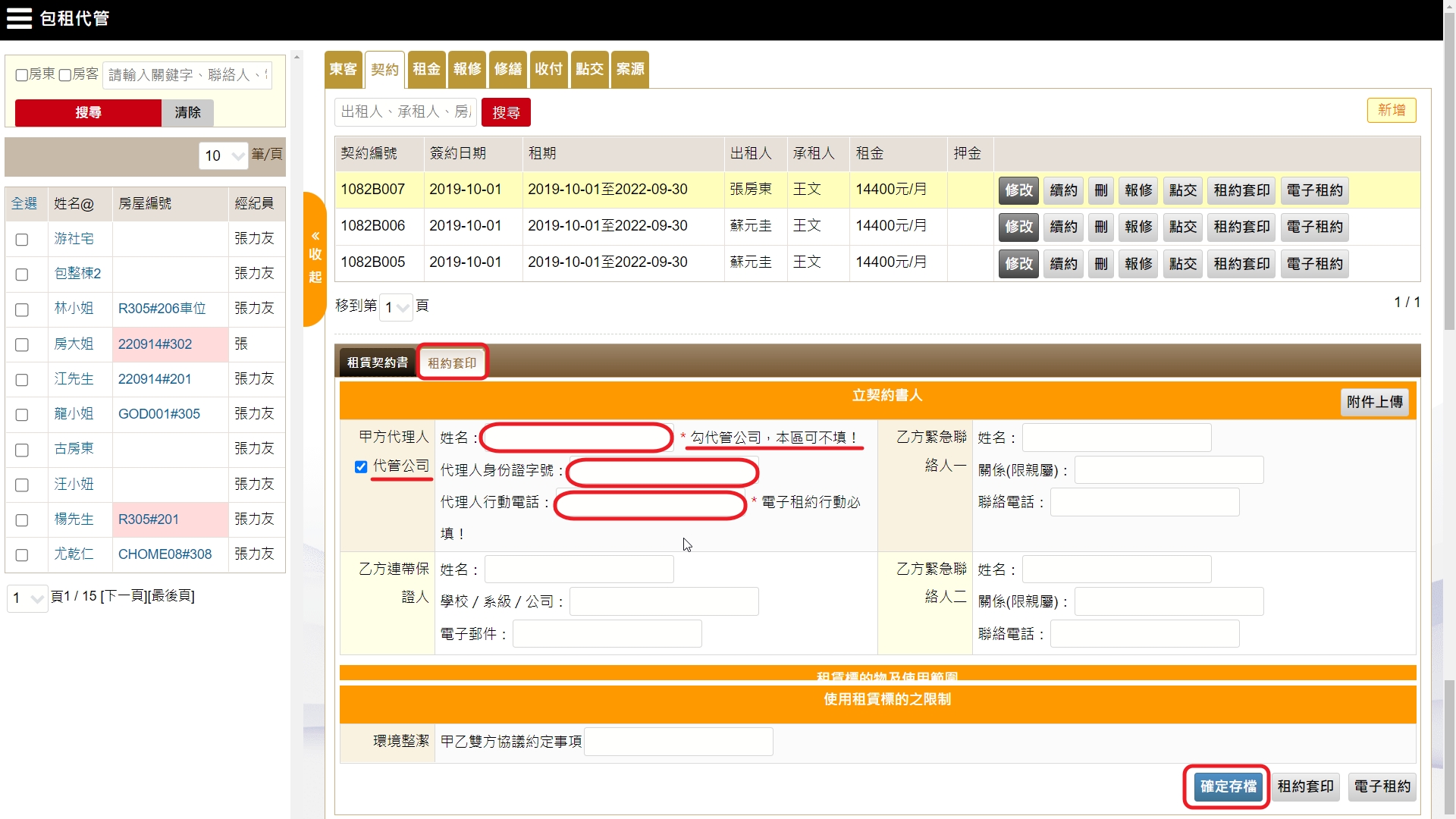 點擊【租約套印】,並編輯好租約內容並【存檔】。