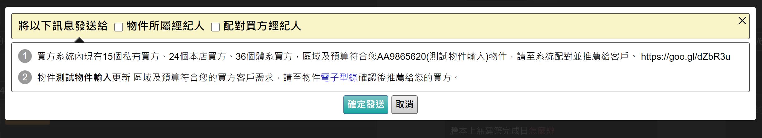 PS1.【APP推播時機】:當祕書新增物件或更新物件時若有做:價變、起迄日修改、斡旋、成交、停銷等異動時,系統將即時分別向 賣方(物件異動)與買方(配對通知)經紀人 做APP推播!
